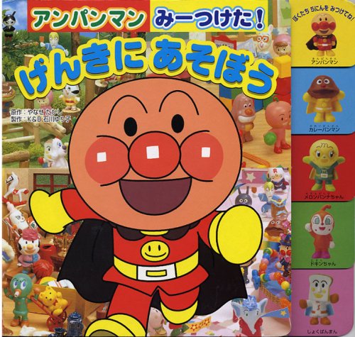 「みーつけた」シリーズの中級編 同様の本が4冊でており、どれを購入しようか迷いました。「あんぱんまんみーつけた」が初級、この本と「ゆかいなぼうけん」が中級編で「たのしいおでかけ」が上級かな。背景が細かく、複雑になります。「げんきにあそぼう」は背景が公園や幼稚園なので、1歳9ヶ月の娘には身近に感じると思い、2冊目はこれに決めました。「あんぱんまんみーつけた」も気に入ってますよ。